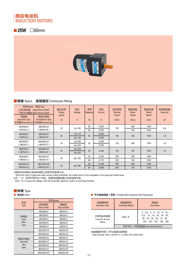 電機特性:感應電機,可逆電機,調速電機 ,剎車電機可選。